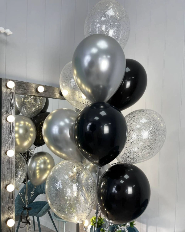 Чёрный цвет отличается бесконечной магией благодаря наличию в себе глубинных свойств. Многие декораторы называют цвет элегантным, изысканным и даже сексуальным. Принято дарить изделия близким друзьям и подругам. Особенно привлекательно смотрятся шары с надписью или рисунком. Среди представленных вариантов каждый найдёт наиболее подходящий для себя.