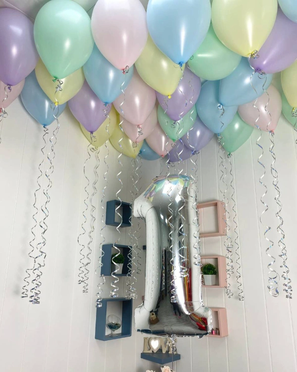Из сиреневых шариков делают разнообразные композиции. Оригинально смотрятся выполненные из них арки, фигуры, панно и другие конструкции. Произведёт фурор также внешний вид облаков, букет или обычная связка надувных шаров.