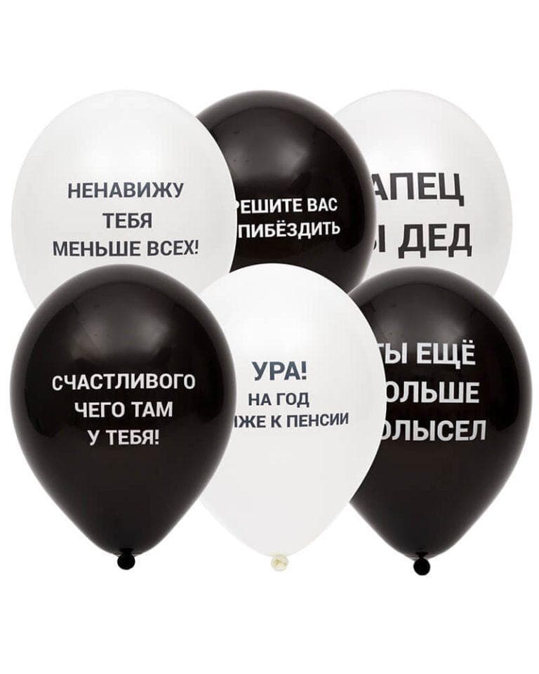 Воздушные шары с оскорблениями и приколами можно купить в различных цветовых решениях: