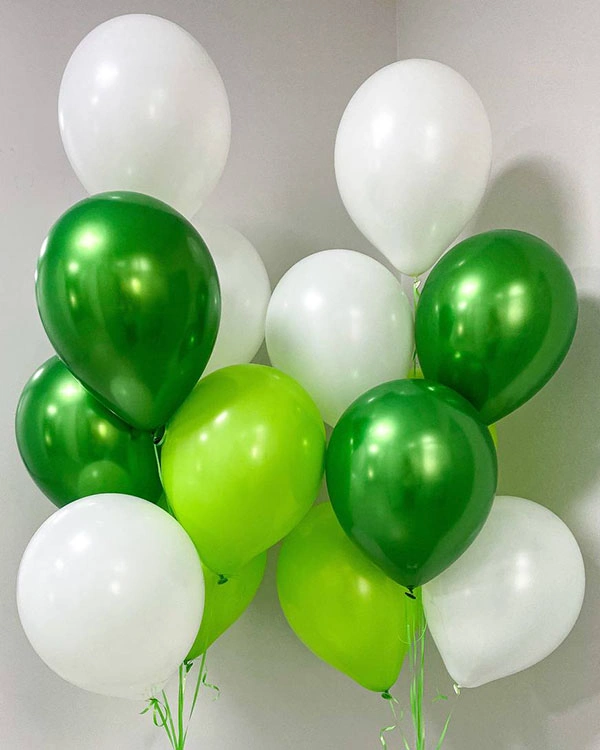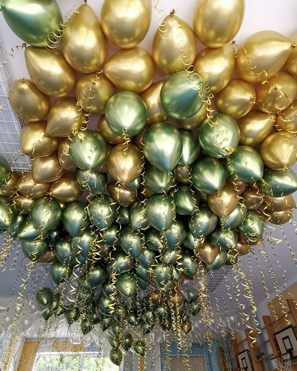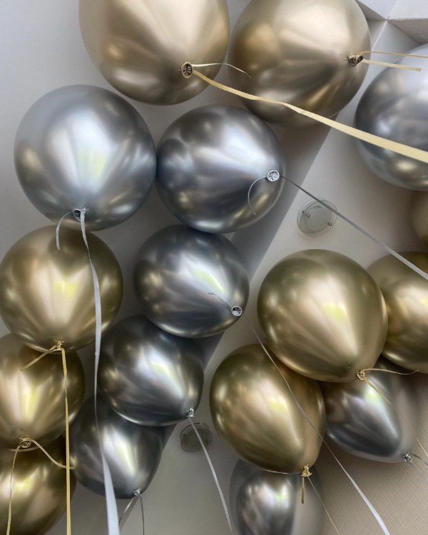 76. Оригинальным дополнением праздничной атмосферы станут шарики цвета металлик. В зависимости от предпочтения можно сделать в пользу стильных серебристых, золотых и цветных вариантов.